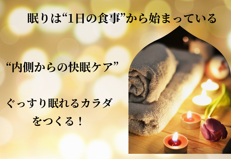 前回の「枕」に続いて、今回は“内側からの快眠ケア”として「食と睡眠」は避けられないとまた調べてみました。 眠りは“1日の食事”から始まっている 「寝つ...
