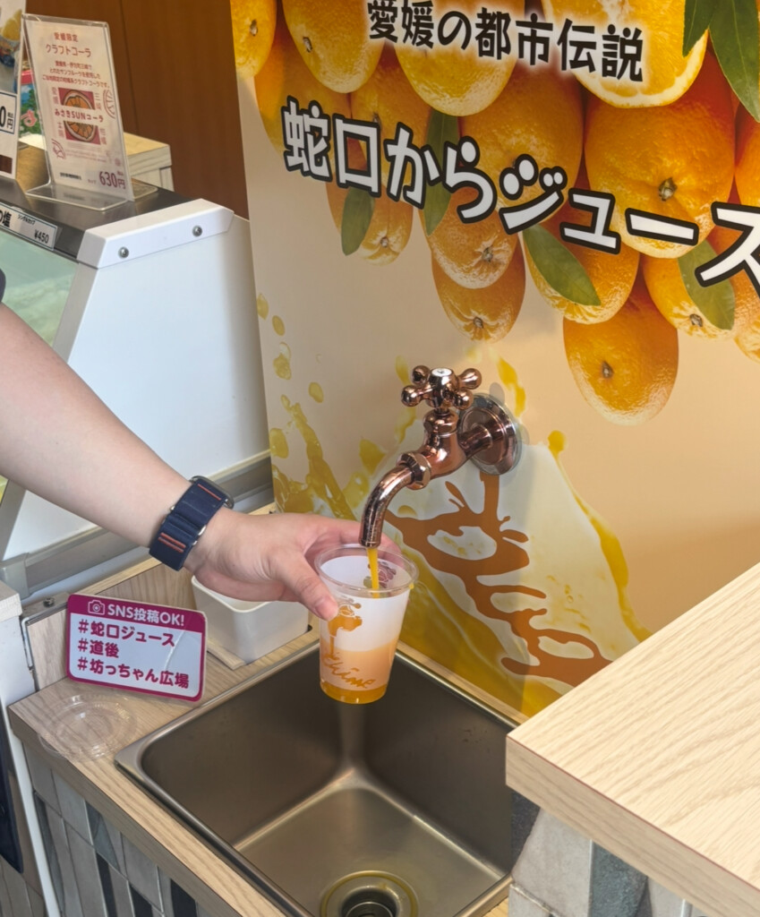 そして最後に楽しみにしていた、蛇口から出るみかんジュースを体験!