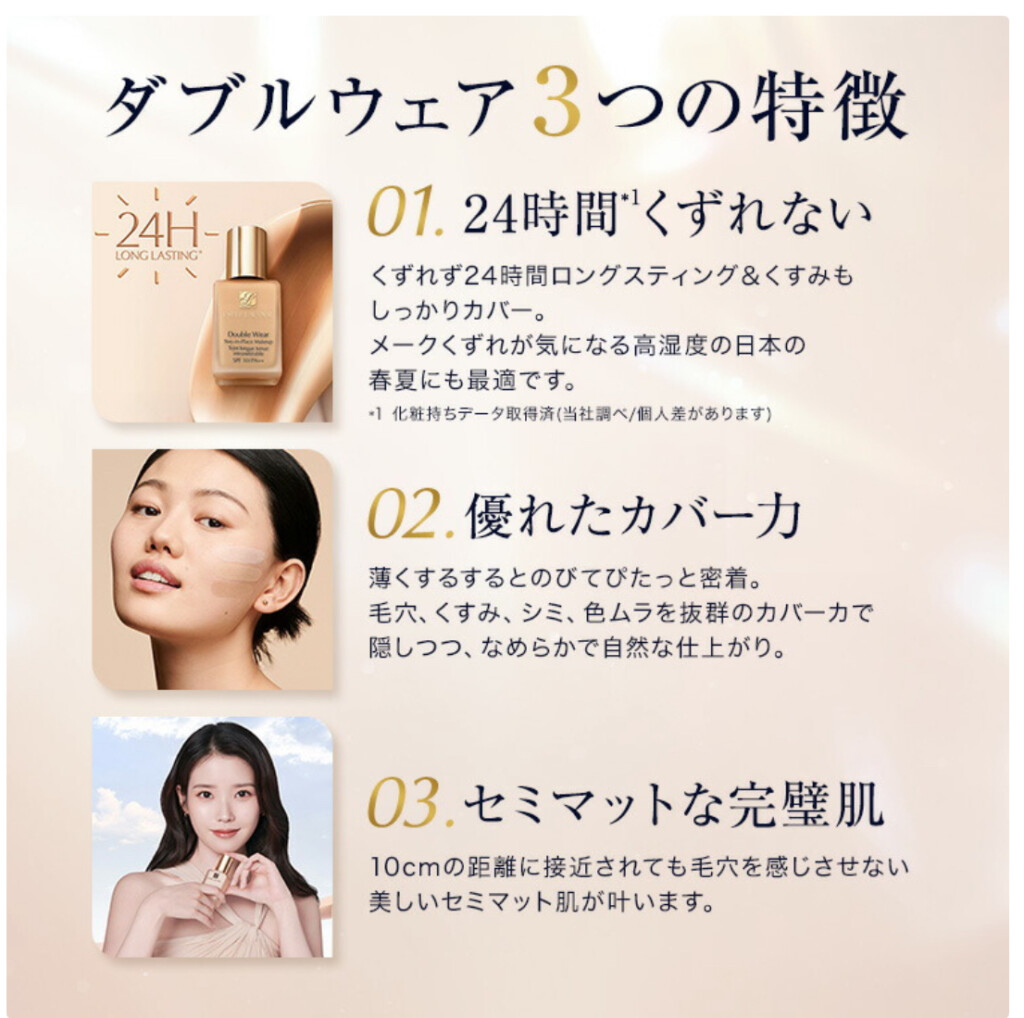 エスティローダーの「ダブル ウェア」は、崩れにくさ・カバー力・自然な仕上がりをすべて叶えてくれるファンデーション。
