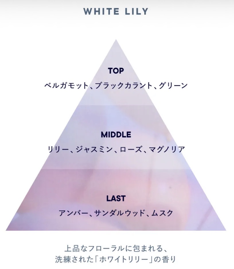 SHIROの香りは、どれも優しくてつけやすいのが特徴です。その中でも、ホワイトリリーは石けんのような清潔感があり、甘すぎないフローラルな香りが心地よいです。 玄関に置いていると、帰宅するたびにふわっと香って「ただいま」と心の中でつぶやくのが習慣になりました。朝出かけるときも、いい香りに包まれると気分が上がります。 主張しすぎないのに、しっかりと香りが広がるので、玄関にぴったりなんです。