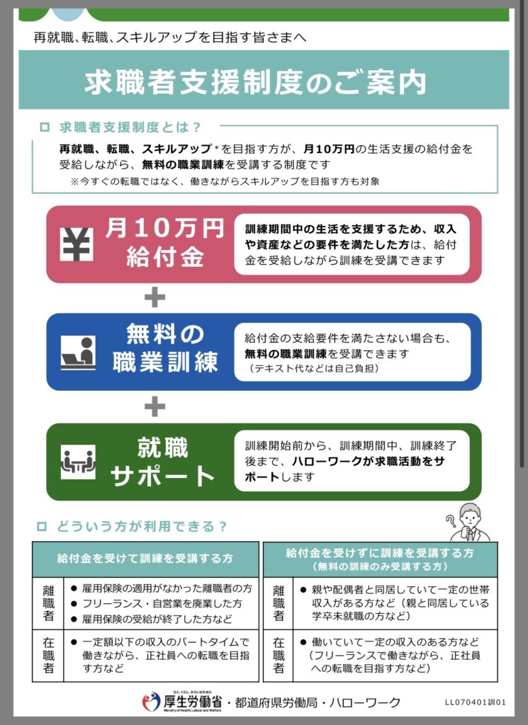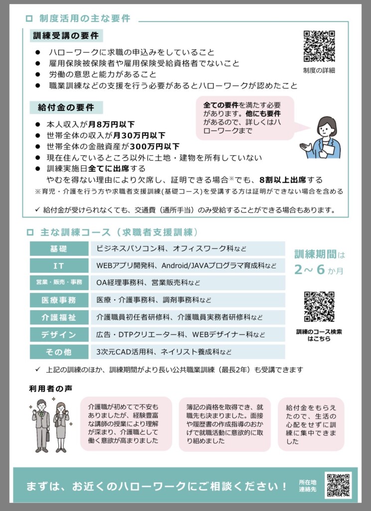 求職者支援制度や職業訓練は、あなたの味方です